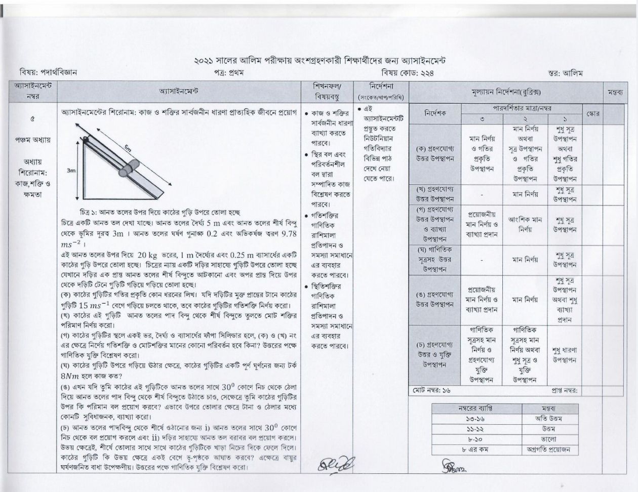 আলিম এসাইনমেন্ট ২০২১ উত্তর/সমাধান পদার্থ বিজ্ঞান ১ম পত্র (এসাইনমেন্ট ৫) -৭ম সপ্তাহ