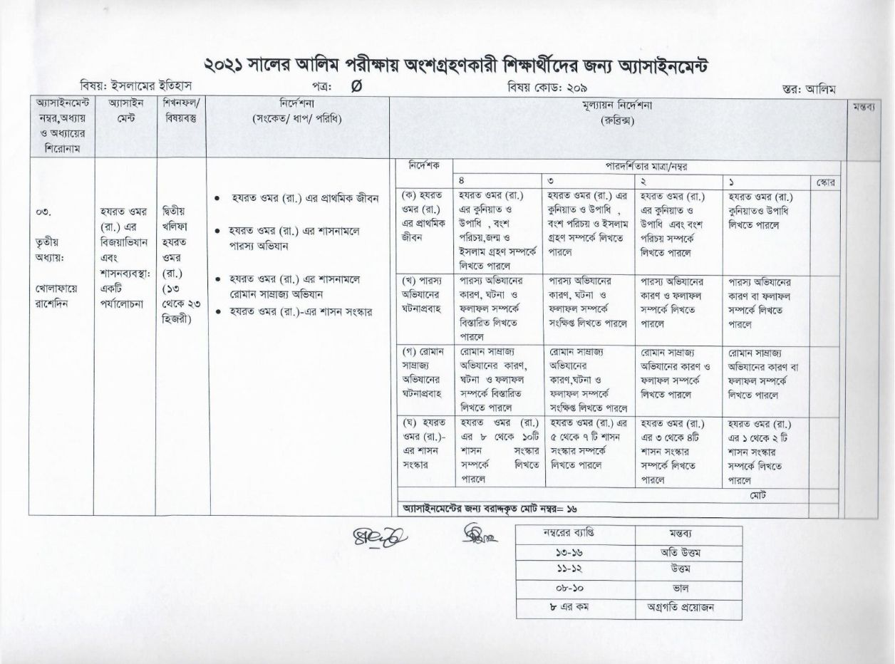 উপযুক্ত বিষয় ও সূত্রের প্রেক্ষিতে জানানাে যাচ্ছে যে , চলমান কোভিড -১৯ অতিমারির কারণে জাতীয় শিক্ষাক্রম ও পাঠ্যপুস্তক বাের্ড ( NCTB ) ২০২১ সালের আলিম পরীক্ষার্থীদের জন্য পুনর্বিন্যাসকৃত পাঠ্যসূচিরভিত্তিতে প্রণীত অ্যাসাইনমেন্ট ও সংশােধিত গ্রিডের সফটকপি মাদ্রাসা শিক্ষা অধিদপ্তরে প্রেরণ করে ( সূত্রোক্ত স্মারক ) । তৎপ্রেক্ষিতে অ্যাসাইনমেন্ট গ্রিডের নির্দেশনা মােতাবেক ২০২১ সালের আলিম পরীক্ষার্থীদের জন্য পুনর্বিন্যাসকৃত পাঠ্যসূচীরভিত্তিতে প্রণীত মূল্যায়ন রুব্রিক্সসহ সপ্তম সপ্তাহের অ্যাসাইনমেন্ট ও অ্যাসাইনমেন্ট গ্রিড মাদ্রাসা শিক্ষা অধিদপ্তরের ওয়েবসাইটে আপলােড করাসহ সংশ্লিষ্ট সকল মাদ্রাসার ই – মেইলে প্রেরণ করা হলাে ।
