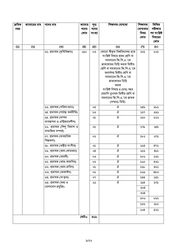 নন-ক্যাডারের এক হাজার ২২ পদের মধ্যে প্রায় অর্ধেক পদ সরকারি প্রাথমিক বিদ্যালয়ের প্রধান শিক্ষকের জন্য রাখা হয়েছে। বিজ্ঞপ্তির তথ্য মতে, এ বিসিএসে ৪৫৭ জনকে সরকারি প্রাথমিক বিদ্যালয়ের প্রধান শিক্ষক হিসেবে নিয়োগ দেওয়া হবে। তাদের গ্রেড রাখা হয়েছে ১১তম (প্রশিক্ষণপ্রাপ্ত)। প্রশিক্ষণবিহীনদের রাখা হেয়েছে ১২তম গ্রেডে।