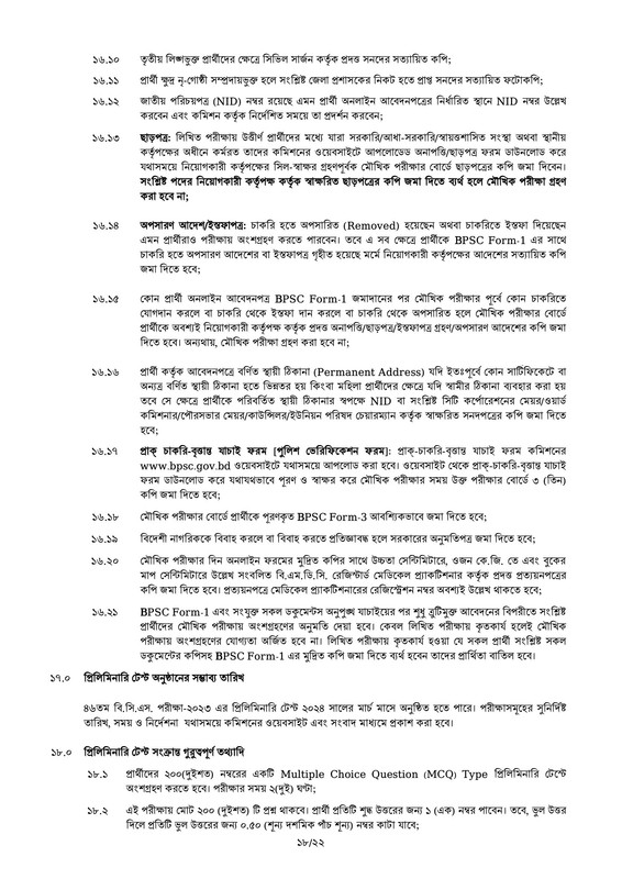 ৪৫তম বিসিএসের বিজ্ঞপ্তি 2024 আজ বুধবার প্রকাশ করবে সরকারি কর্ম কমিশন (পিএসসি) 45th BCS Circular। ৪৬তম বিসিএসের আবেদন প্রক্রিয়া শুরু হয়েছে (১০ ডিসেম্বর)। সকাল ১০টা থেকে অনলাইনে আবেদন শুরু হয়। চলবে আগামী ৩১ ডিসেম্বর সন্ধ্যা ৬টা পর্যন্ত। ৩০ নভেম্বর সরকারি কর্ম কমিশনের (পিএসসি) ওয়েবসাইটে সার্কুলার প্রকাশ করা হয়।