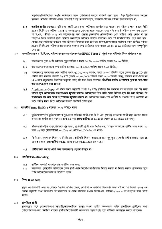 46th BCS Circular 2024 published ৪৬তম বিসিএসের বিজ্ঞপ্তি প্রকাশ