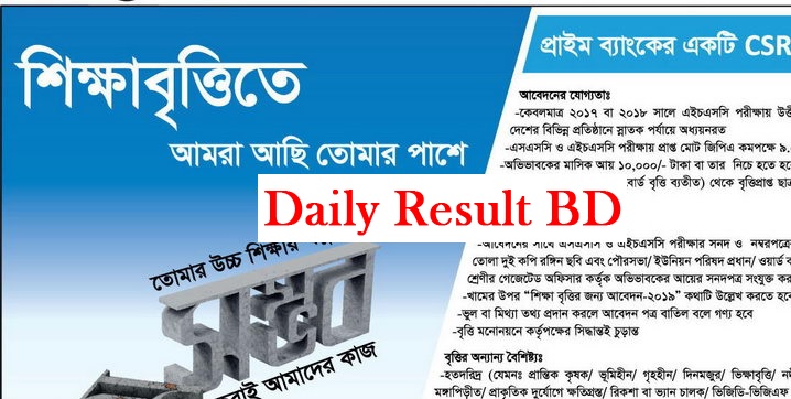 Prime Bank Scholarship Circular & Result 2023 শিক্ষার্থীরা ২০ আগষ্ট পর্যন্ত প্রাইম ব্যাংক ফাউন্ডেশন বৃত্তির জন্য আবেদন করতে পারবে। এই বৃত্তিতে আবেদনের জন্য শিক্ষার্থীদের অবশ্যই প্রাইম ব্যাংক ফাউন্ডেশনের ২০২৩ সালের বৃত্তির জন্য নির্ধারিত ফরমে আবেদন করতে হবে। আবেদনপত্র প্রাইম ব্যাংকের সকল শাখা এবং প্রাইম ব্যাংকের হেড অফিস থেকে সংগ্রহ করতে হবে।