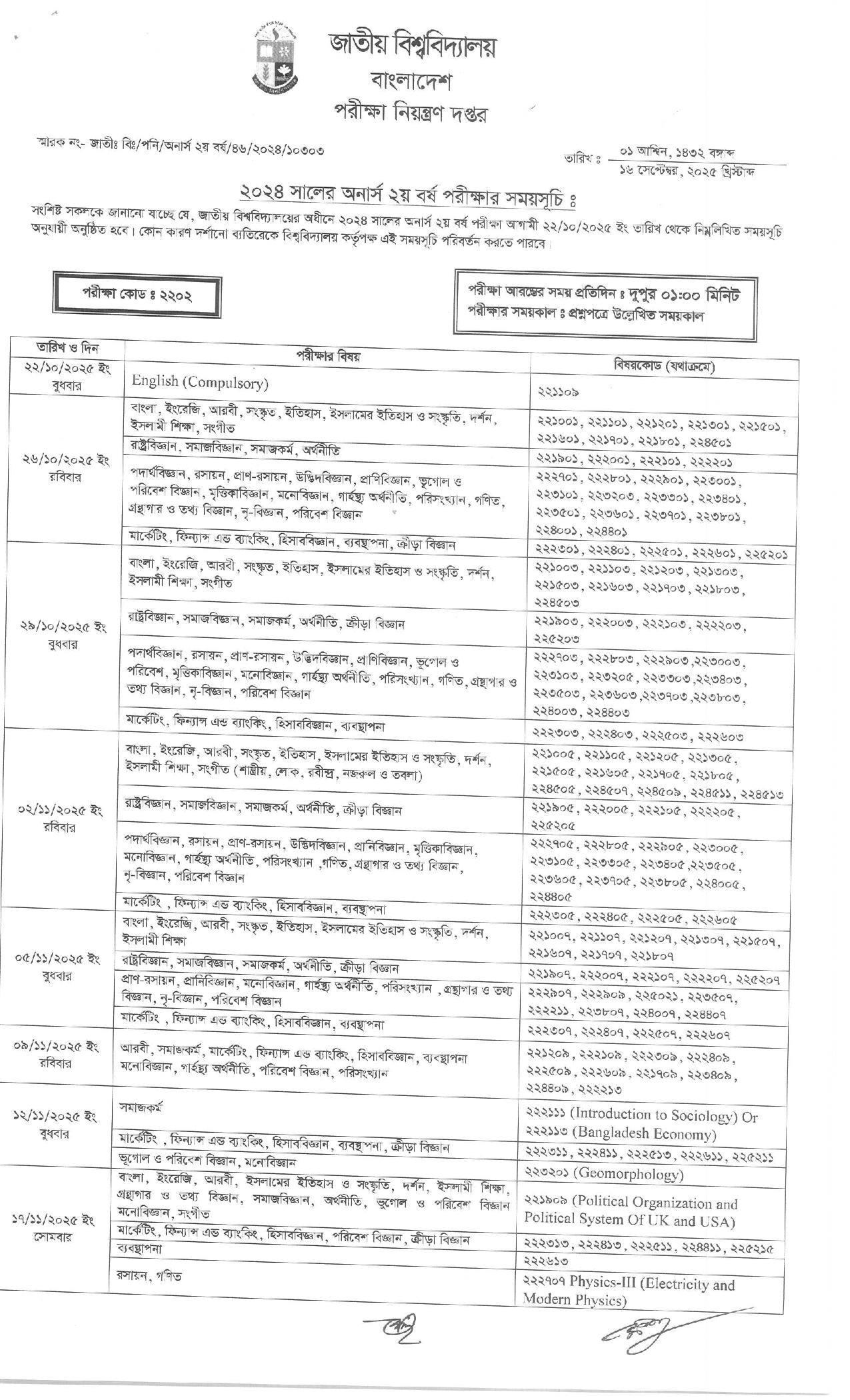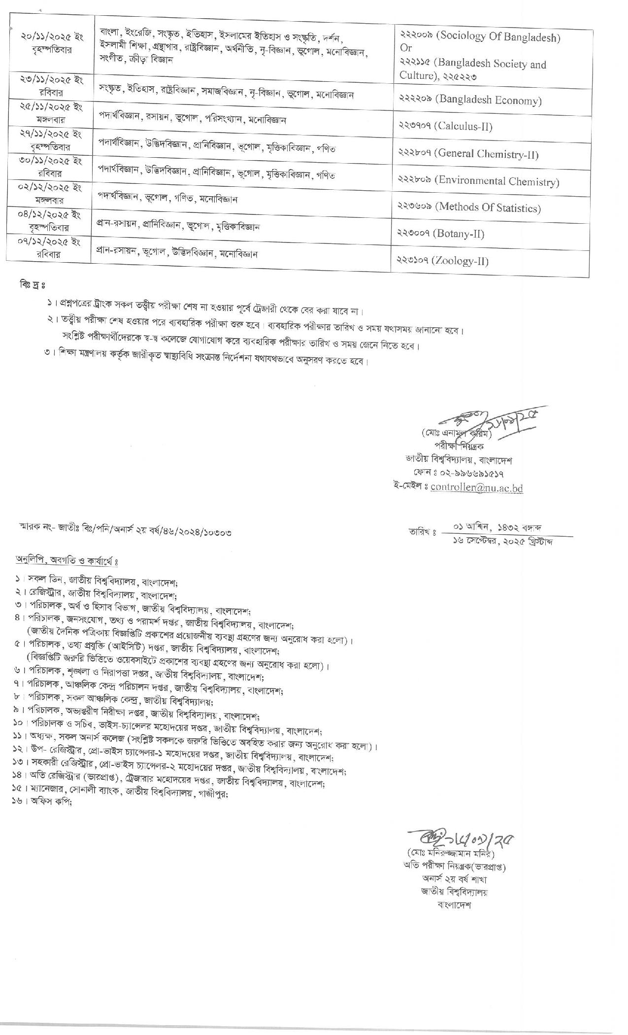 এটি জাতীয় বিশ্ববিদ্যালয়ের পরীক্ষা নিয়ন্ত্রকের দপ্তর থেকে প্রকাশিত অফিসিয়াল রুটিন।